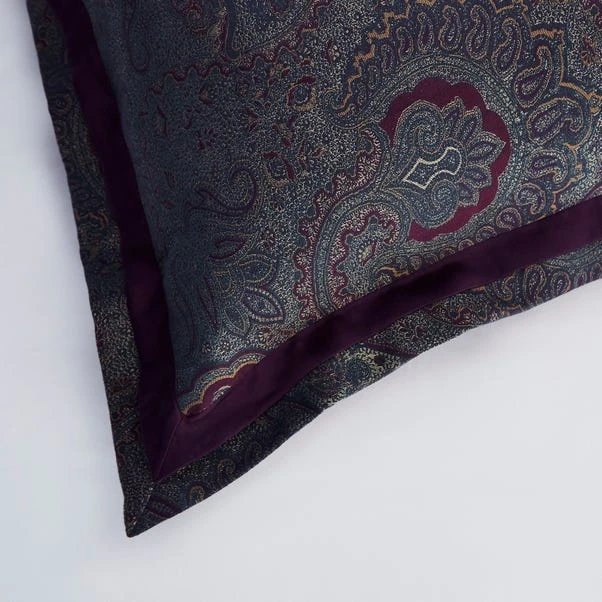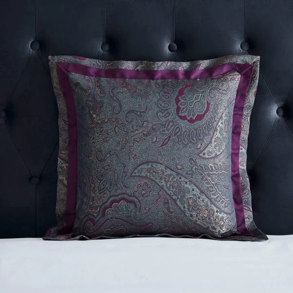 Indulge in luxury with our sophisticated paisley jacquard cushion intricately woven with multi-coloured yarns for a rich and beautiful classic design. Finished with a double oxford edge and filled with feather filler, this stunning cushion makes a luxurious statement in any bedroom. Coordinate with our matching bedding, curtains, pillow sham, and bedspread for a cohesive and elegant decor theme.