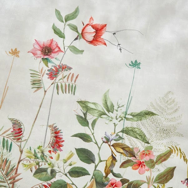 Inspired by English cottage gardens, the Dorma Rambling Rose duvet cover and pillowcase set is framed by beautifully painted, florals and delicate foliage in soft greens. This gorgeous design is printed on a woven jacquard quality made from pure cotton with a 240 thread count to give it textural depth, making the Rambling Rose bedding set a luxurious choice for any bedroom. The soft cream ground of the face of the duvet contrast beautifully with the delicate tones of the summery blooms and is matched perfectly with a plain reverse crafted from pure cotton. Finished with a secure zip closure to give you an uninterrupted night sleep and comes complete with matching reversible pillowcase(s) for a complete bedding look. Good things come to those who coordinate, so pair this duvet cover and pillowcase set with the matching Dorma Rambling pillowcase pairs, Oxford pillowcases, cushions, or bedspread for a complete bedroom look?