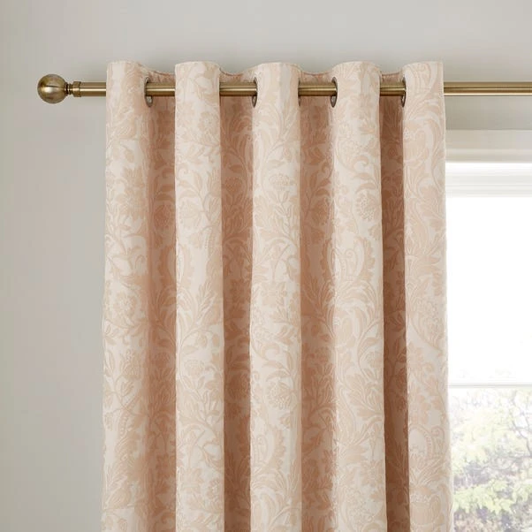 This pair of Dorma curtains feature a beautiful floral and bird design in a choice of colours. They are crafted from a polyester and cotton mix with a thick blackout lining, and feature a classic eyelet header. Available in a choice of sizes.