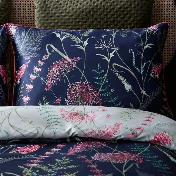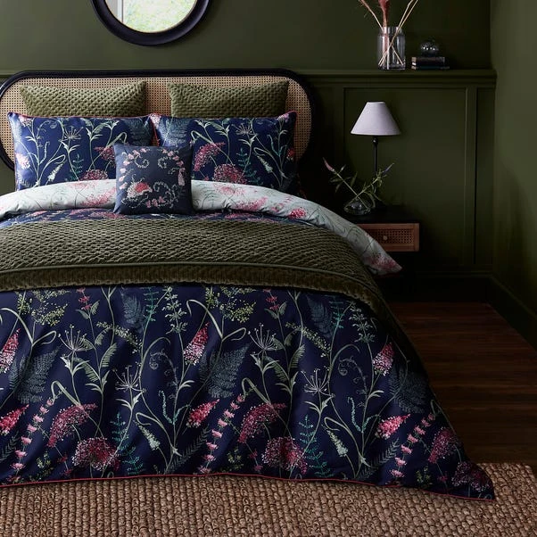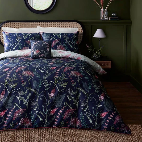 Hand-painted floral sprays blossom beautifully across a striking backdrop. Every stem and petal is printed on high quality 300 thread count cotton sateen, with a neat piped edge to finish. The duvet cover comes complete with a secure zipper fastening which is quick and easy to use. Complete the look by pairing the duvet cover set with the coordinating pillowcases and curtains available in the Dorma Winter Garden range.